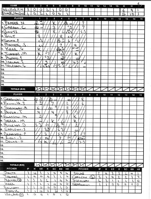 Here is the Boxscore of the game: Team Wamboldt: 6, Team Gionas: 5