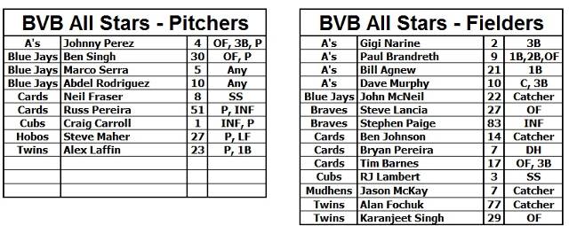 The Game itself was Team "Rusty" vs. Team "McKay" as Russ Pereira and Jason McKay (Filling in for Rick "Boots" Boutilier) picked their sandlot teams from the list of All-Stars Below: