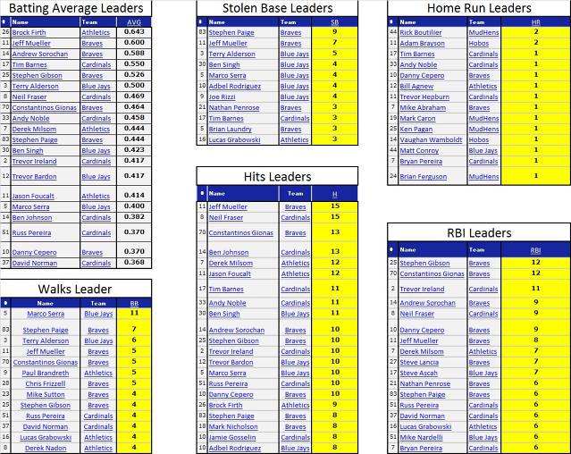 Note: To qualify for the Batting Average leader board, players had to have played at least half of their teams games minus 1