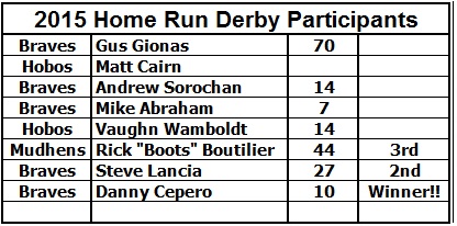 Our Annual All-Star Game & Home Run Derby went off as scheduled Sunday July 3rd at 5:30 PM at Nelson Park with 10 participants. They were;