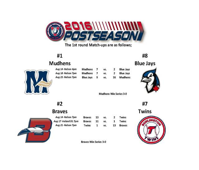 Game #1 of each of the Quarter Final series will be played Friday August 21st.