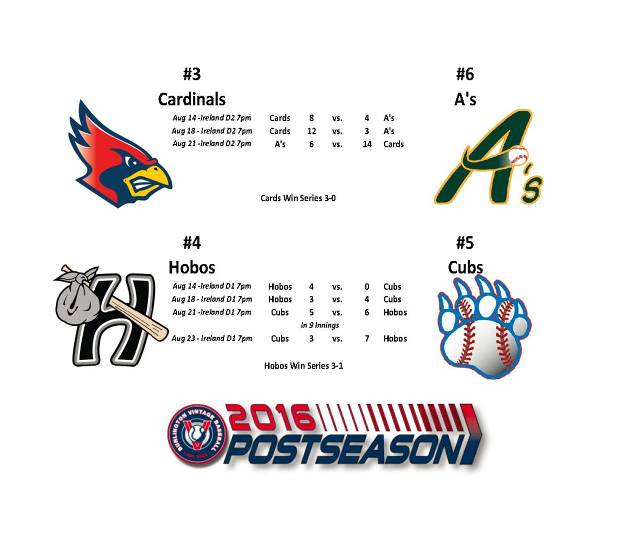 Hats off to the Hobos who had a great playoff run but ran into a team that lost only 1 playoff game in their 3 series combined this year. T-Bone, Hooper and the guys did a great job all year long. Congrats on a great season.