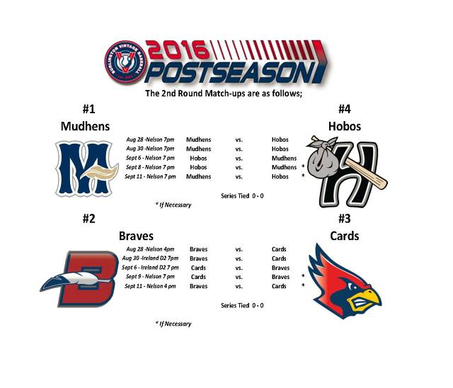 Tomorrow night, the #3 Mudhens play the #2 Cardinals at 8:30 and the #4 Hobos play the A's at 6 pm. Both games are at Nelson Park.