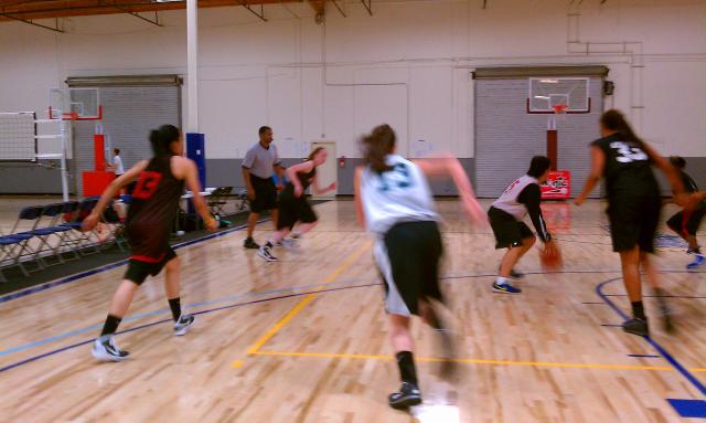 Elite girls with WNBA Sparks head coach Michael Cooper.