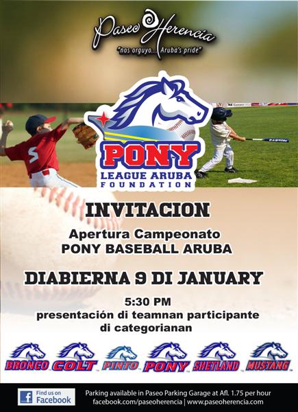 Pony Baseball ta preparando pa cuminsa cu su Campeonato di Baseball aki na Aruba den preparacion pa e retonan nobo pa 2017. E congreso aki lo tuma lugar na: