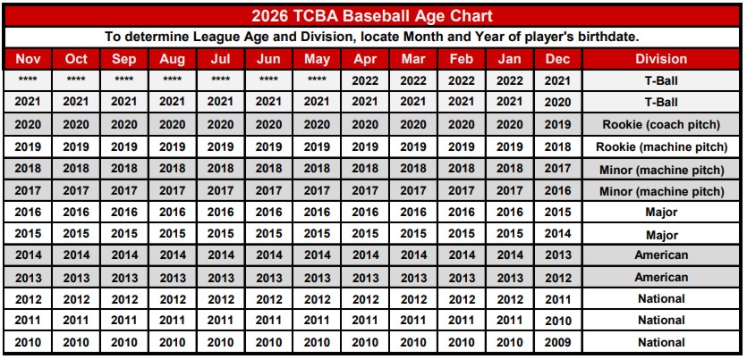 There is an option to waive a player up or down from the league their age group is assigned. This is at the discretion of the TCBA Board and League Directors. Waivers are not guaranteed and may be denied. Give an explanation on the registration form why you request a waiver so it can be considered. The league director will notify you if the waiver was granted or not. If there is a valid reason and there is room in the league, the waiver could be granted. Safety of the player requesting the waiver and that of the players in the affected leagues is the primary concern.