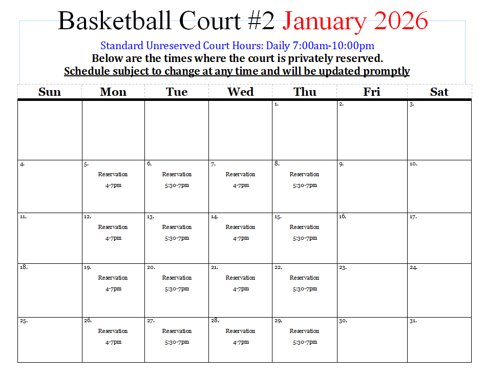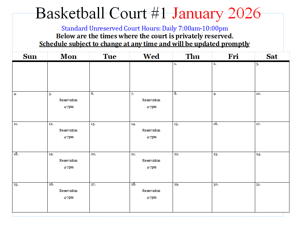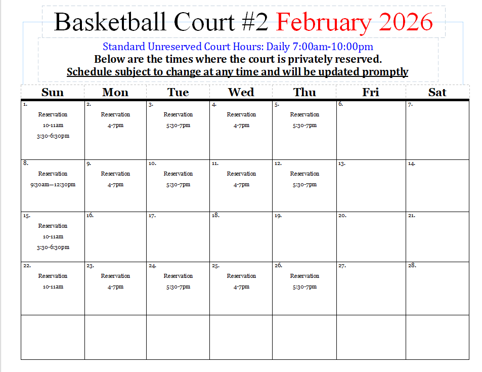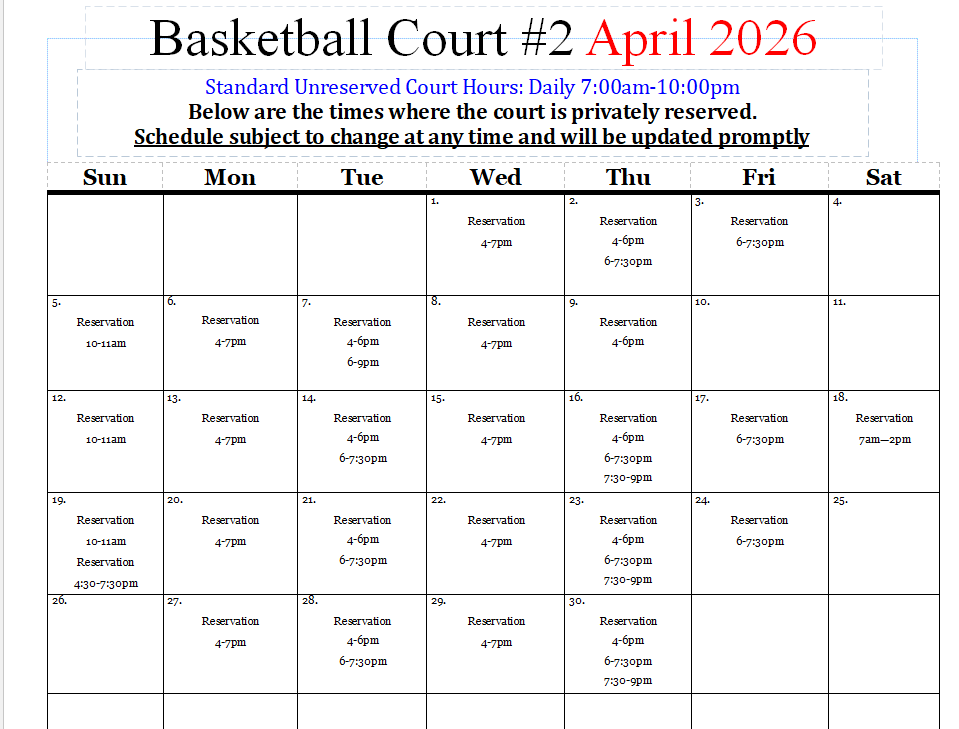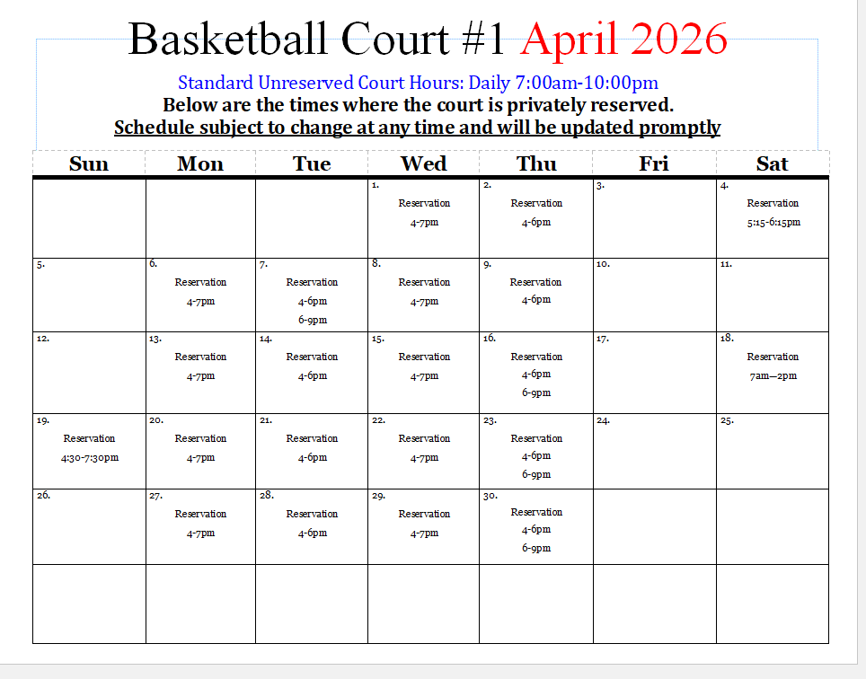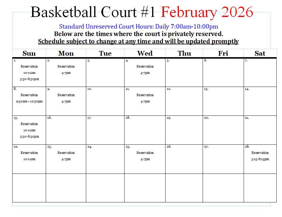 Outdoor Courts Schedule