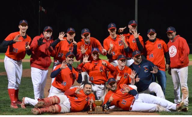 Game #4 was last night with the Braves leading the Hobos in the Final Series 2 games to 1. Right from the opening pitch, the Braves were intent on imposing their will. By the time it was the 4th inning, they were up 8-0 with Catcher Josh Ware leading the way with a pair of 2 run homers. He would finish the night 3-3 with 2 HRs, 4 RBI's and 3 runs scored in a 13-2 win for the Braves as they clinched their first BVB Championship.