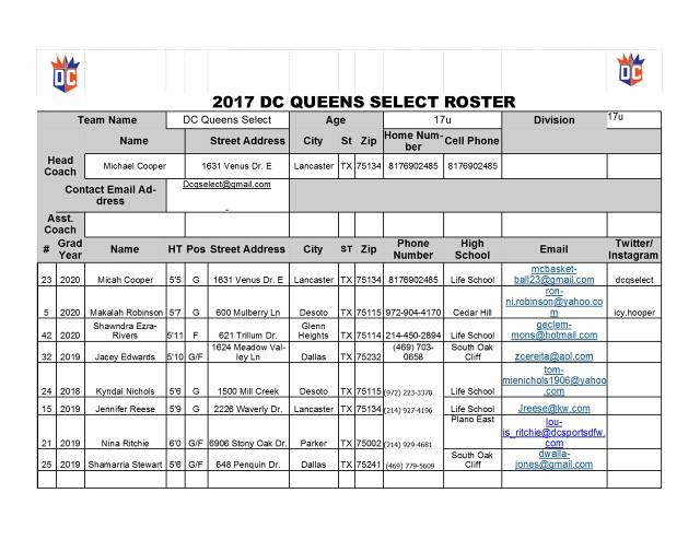 2017 DC QUEENS SELECT ROSTER