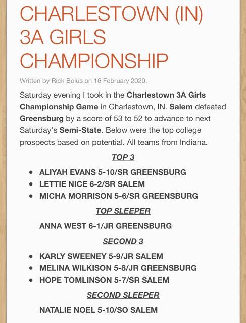 Prep Girls Hoops Indiana 2019-20 Class 3A
