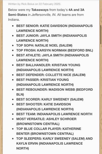 Prep Girls Hoops Indiana 2019-2020 Class 3A