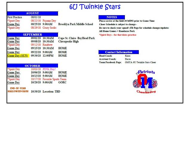 Subscribe to our NewsletterTwinkle Stars 6U Squad 2018 Cheer Schedule!