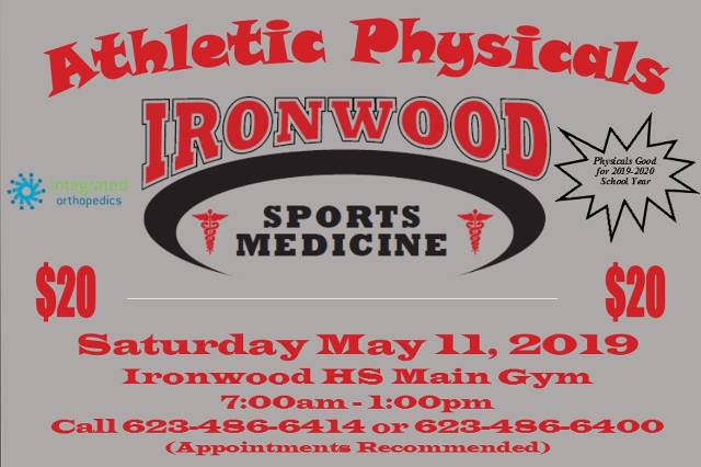 Subscribe to our NewsletterIronwood Sports Medicine is hosting its Annual Athletic Physical Day on Saturday, May 11th from 7am-1pm. Cost is $20 per physical and open to anyone 18 and under (do not have to be an Ironwood student). We will have physical therapists, athletic trainers, physician assistants and medical doctors that are all trained in sports medicine.