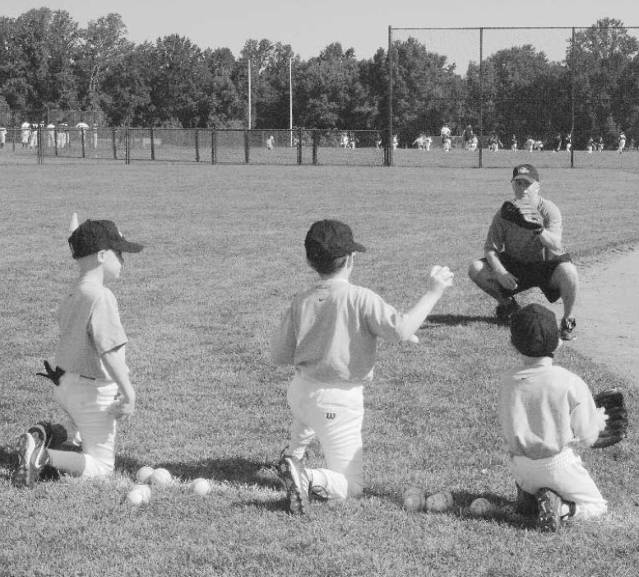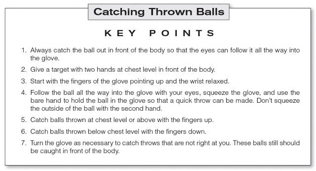 This is a game played by baseball players at all levels. As players play catch, 1 point is awarded to the thrower for each ball caught at chest level. Two points are awarded for a ball caught at head level. Points can be deducted for uncatchable throws. If a throw is accurate but the receiver misses it, points are still awarded to the thrower. The first player to 21 wins. Stress proper mechanics. Set up a team competition in which winners move on and losers are eliminated. To speed things up, play to 15 instead of 21.
