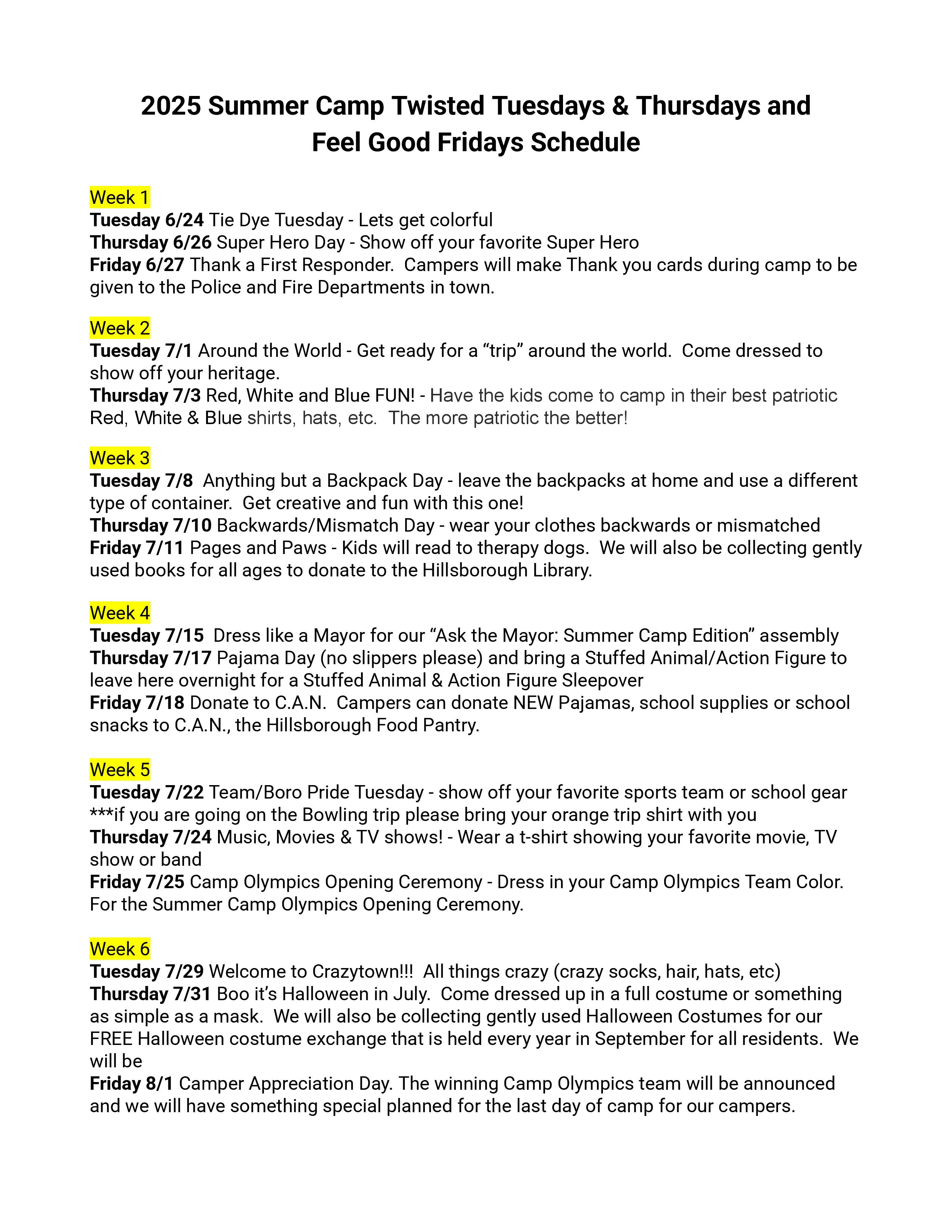 Hillsborough Recreation Summer Camps