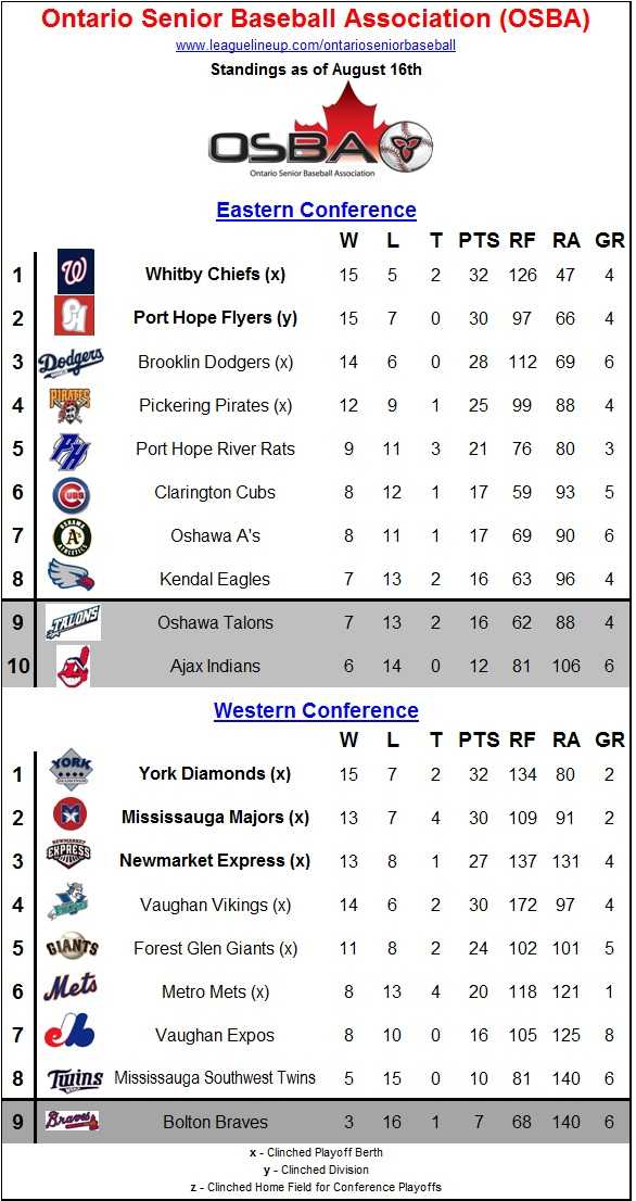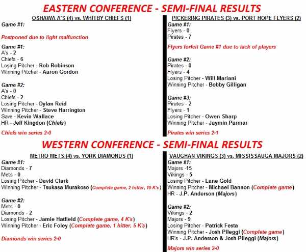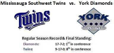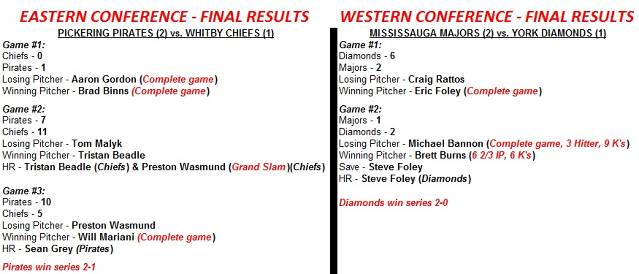 York – Defeated Mississauga Southwest Twins in quarter finals (2-0), Metro Mets in semi-finals (2-0), Mississauga Majors in conference finals (2-0)