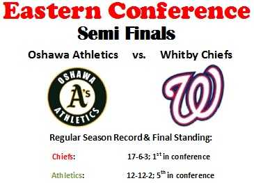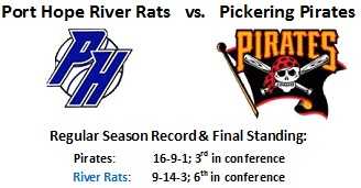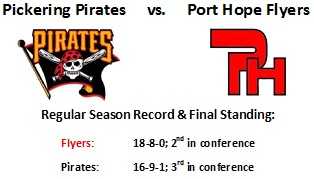 Pickering – Defeated Port Hope River Rats in quarter finals (2-0), Port Hope Flyers in semi-finals (2-1), Whitby Chiefs in conference finals (2-1)