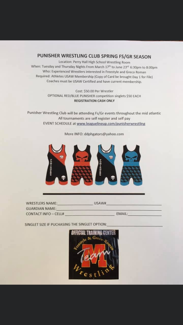 All Practices will be held at the Perry Hall High School Wrestling Room Next to the gymnasium! Entrance is the side door next to the baseball fields walk around the building following the sidewalk to the entrance! Parking will be in the Parking Lot only! No one is to drive down the ramp and park around the building!