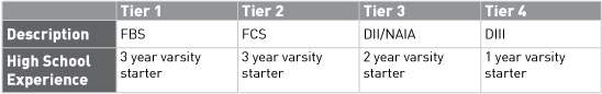 Must be the most physically dominant player on the field; should move the line of scrimmage by 5 yards consistently. Must play with excellent pad level by demonstrating natural knee bend. Should have a devastating hand punch against pass rush and be able to lock on defenders and control them. Must be athletic enough to stay ahead of ball carrier in open field and demonstrate the body control to block in space. All-State caliber player.