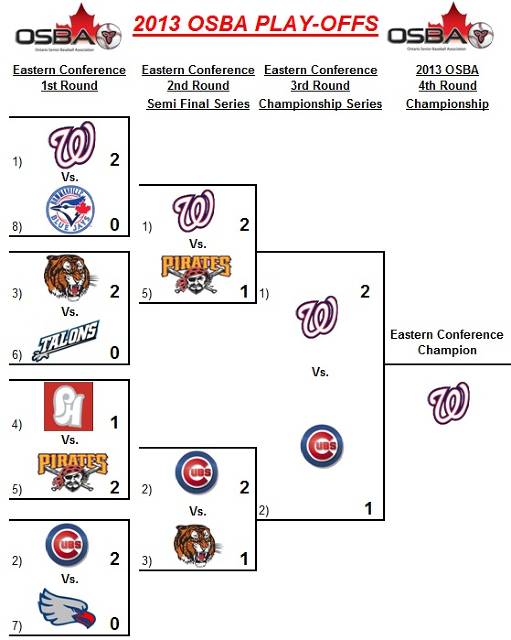The Cubs were the biggest benefactors in the folding of the Oshawa Athletics over the winter picking up a handful of quality players. They didn’t stop there. They also added some youth, managed to pry away a 5 tool player from the rival Dodgers and welcomed back two players who had been out of the game for a few years – getting a quality pitcher and arguably the franchise’s best offensive player of all time. Not too shabby. As mentioned Kendal fine-tuned picking up a little youth and some OSBA experience as well. The Eagles can be described as a solid veteran team but they’ll have their hands full in this series. During the regular season these two teams met twice with the Cubs sweeping the series.