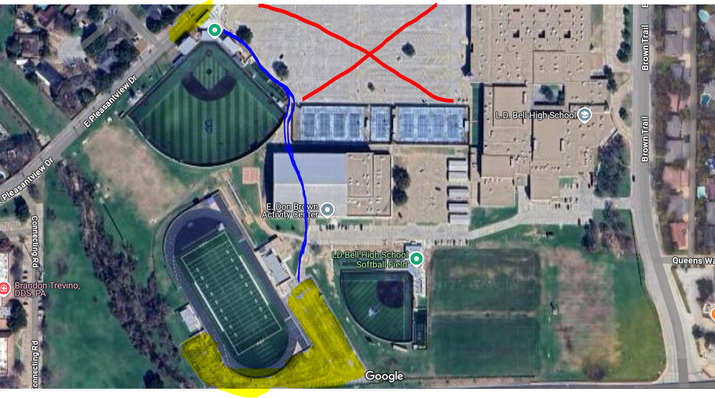 Subscribe to our NewsletterFor teams on buses you will need to drop your team off on pleasantview dr. at the front gate of the baseball field.(Highlighted in yellow) The bus driver will then need to drive around the school and park their bus in the parking lot of our practice football field. (highlighted in yellow at the bottom)