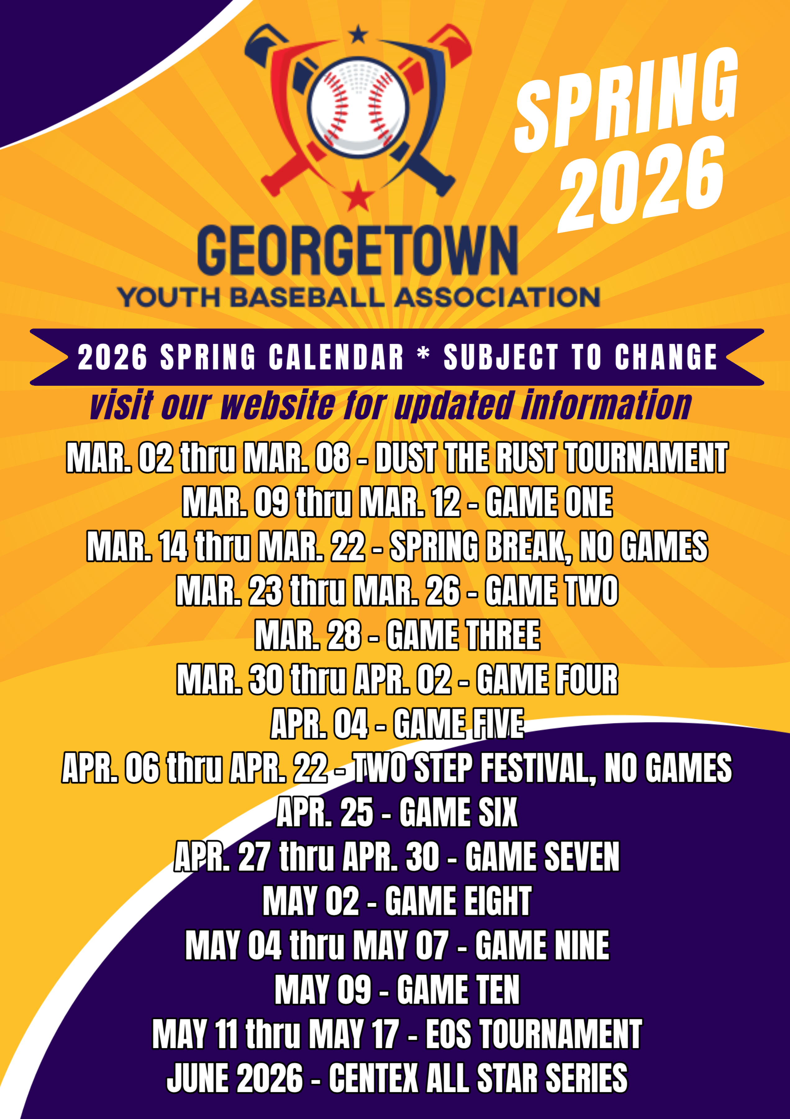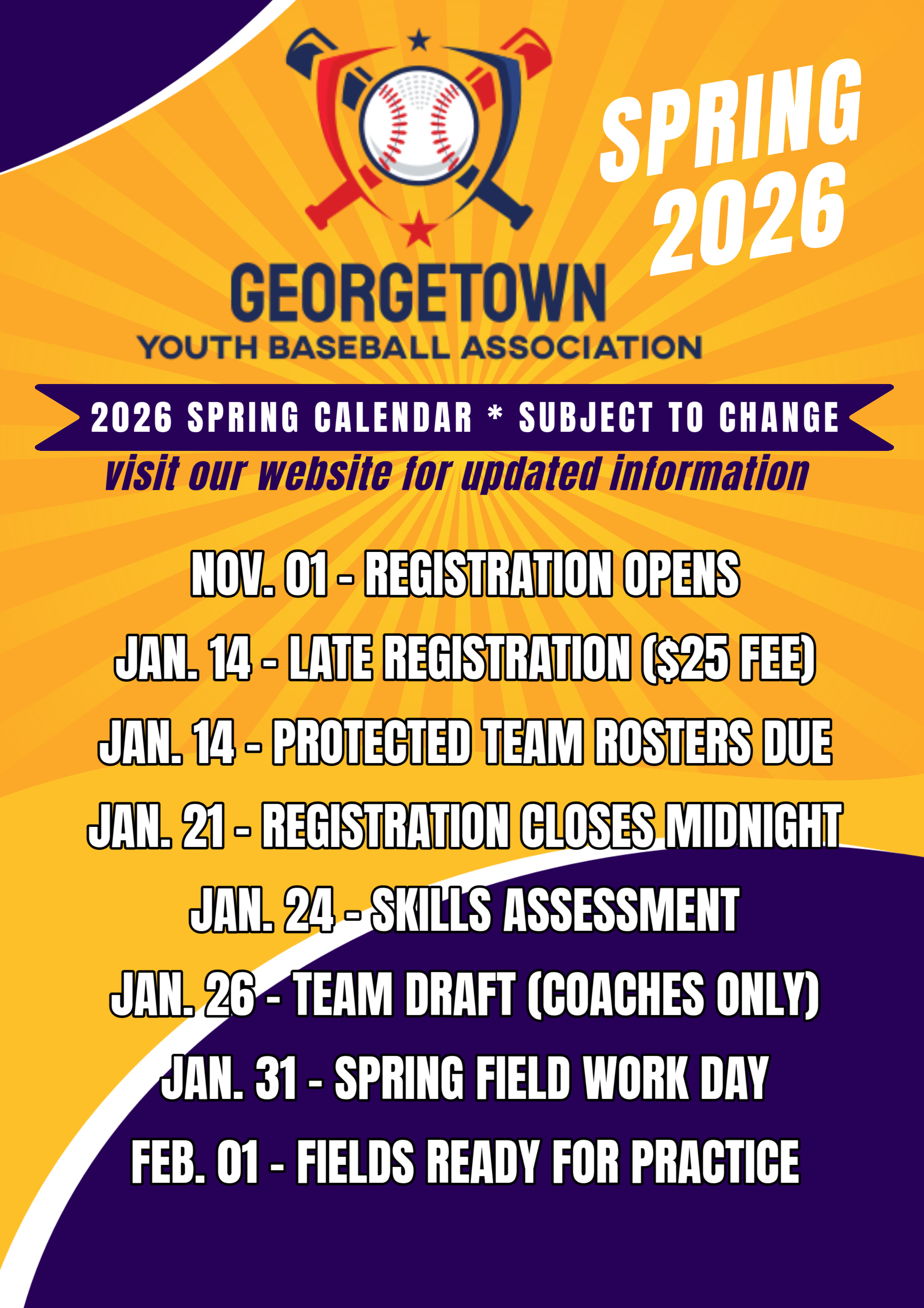 Get important messages from Georgetown Youth Baseball Association by Text & Email