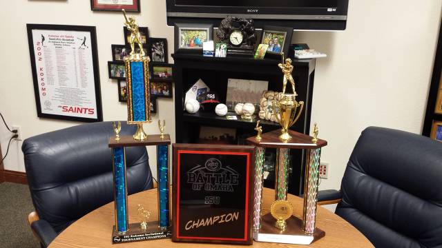 The 15U Kokomo cfd Saints II went 4 & 0 in Omaha to claim the Battle of Omaha Tournament Championship! In game 1, the Saints beat Bellevue, Nebraska 10 to 4. In game 2, the Saints beat Orange County, California 7 to 2. In the Semi-Finals, the Saints beat Simi Valley, California 5 to 4 on a walk-off Single AND in the Championship Game, the Saints beat Woodbury, Minnesota 13 to 1 in 5 Innings as the Saints got 17 hits to bring the hardware back home to Indiana! Along the way, the team got to watch three College World Series games together. We watched Cal State Fulerton get beat by Vanderbilt 4 to 3. We watched Florida beat Virginia 2 to 1 and we watched Vanderbilt beat TCU 1 to 0 in a great pitcher's dual. It was a great start to the 2015 Season. The 15U Saints travel to Taylor University this week-end to play in a 7 Team College Showcase Tournament.