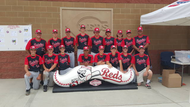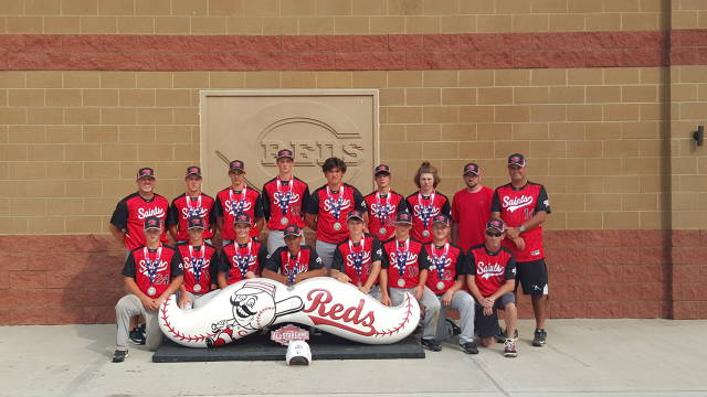 The 15U Kokomo cfd Saints II team improved to 17 & 3 as they won 4 games in route to securing a 2nd place finish in the Cincinnati Reds Youth Tournament Series at beautiful Cincinnati Reds Youth Academy. The only game that the saints lost was a 3 to 2 game in the Championship against the Midwest Prospects and the Saints were rallying with the bases loaded and the tying run on 3rd and the winning run on 2nd when a sharp line drive turned into a game ending double play. It was a great baseball game! The Saints got to play on turf fields and attended a the Cincinnati Reds against the Milwaukee Brewers Baseball game. It was another great experience for this group of young men!