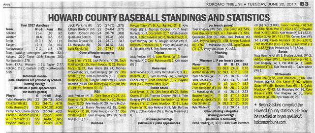 It was with great pride and excitement that I read the 2017 Howard County Statistical Leaderboard and saw all of the current and former great players that have played for the Kokomo cfd Saints II Baseball Program since 2013. It is a testament to the great players that I have been Blessed and Privileged to coach. Very thankful for all of them! They have created cherished memories that will last a life time!!! Congratulations to everyone highlighted in yellow! I am very proud of you and consider/considered it an honor to coach you!