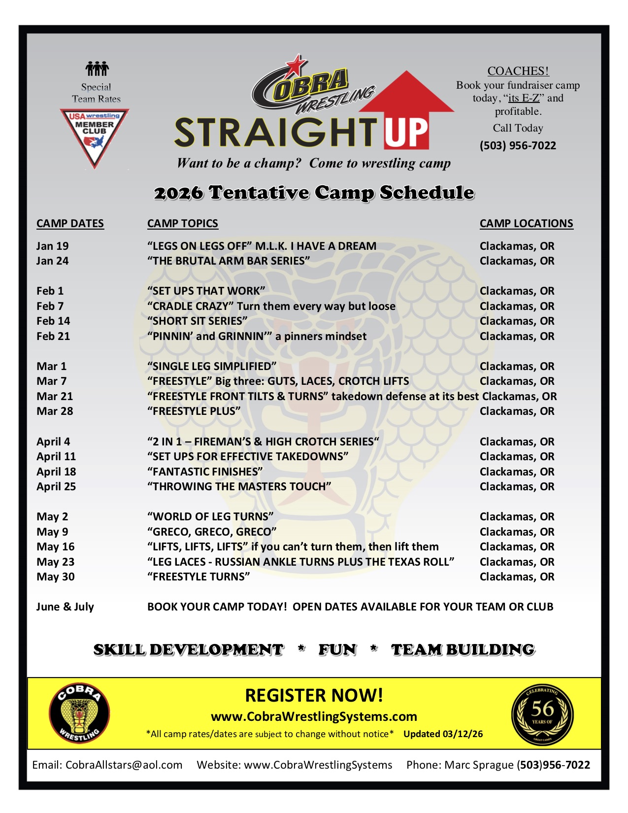 STRAIGHT UP CAMP SCHEDULE updated 03/12/26
