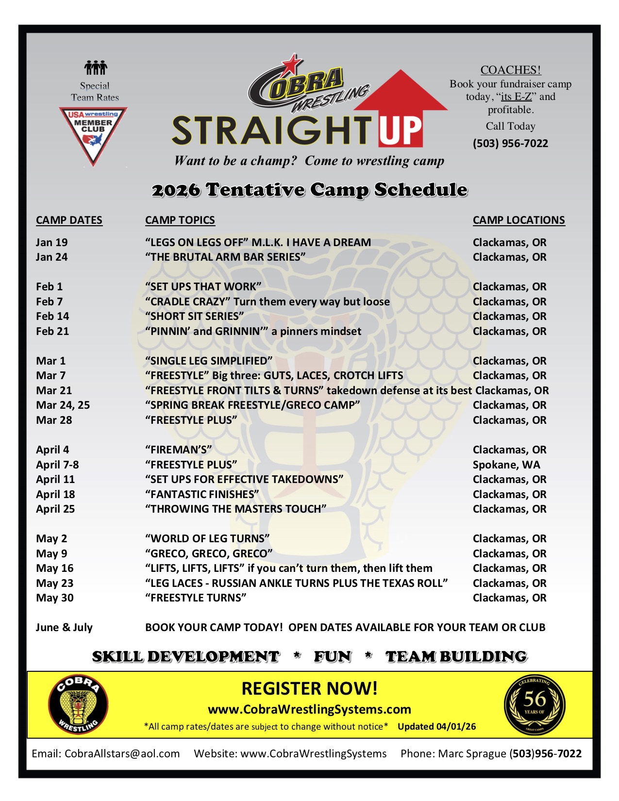 STRAIGHT UP CAMP SCHEDULE updated 04/01/26