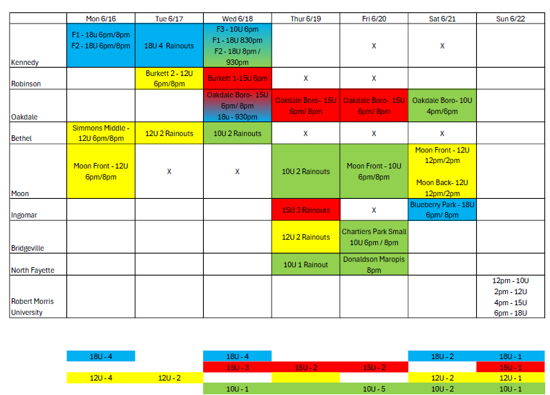 - Season Ends for 15u Fast/15u Slow/18u Slow TBD