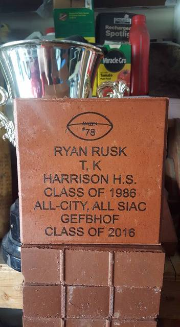 There will be a special 20ft by 10 ft Football Field made out of Engraved Bricks and Black Granite pieces called the Grid Iron Field of Honor. This area of the Diamond Parkay Grid Iron Hall of Fames will be open to anyone who ever played coached refereed administrated, announced, trainers , sponsors or super fans of football in the Greater Evansville Area. Order Forms are located by clicking on the Handouts on the Menu Bar