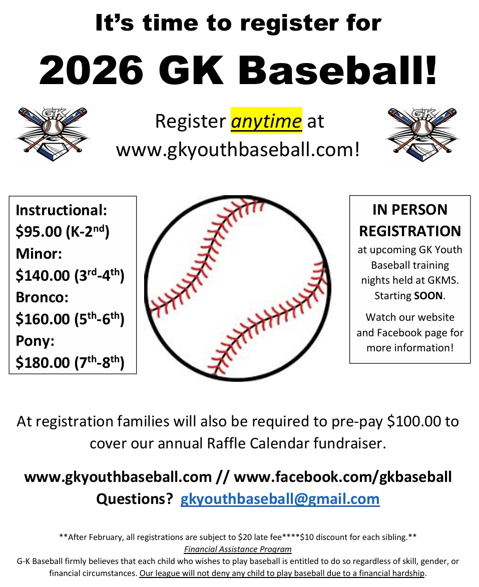 *****gkyouthbaseball@gmail.com "G-K Youth Baseball" on Facebook*****
