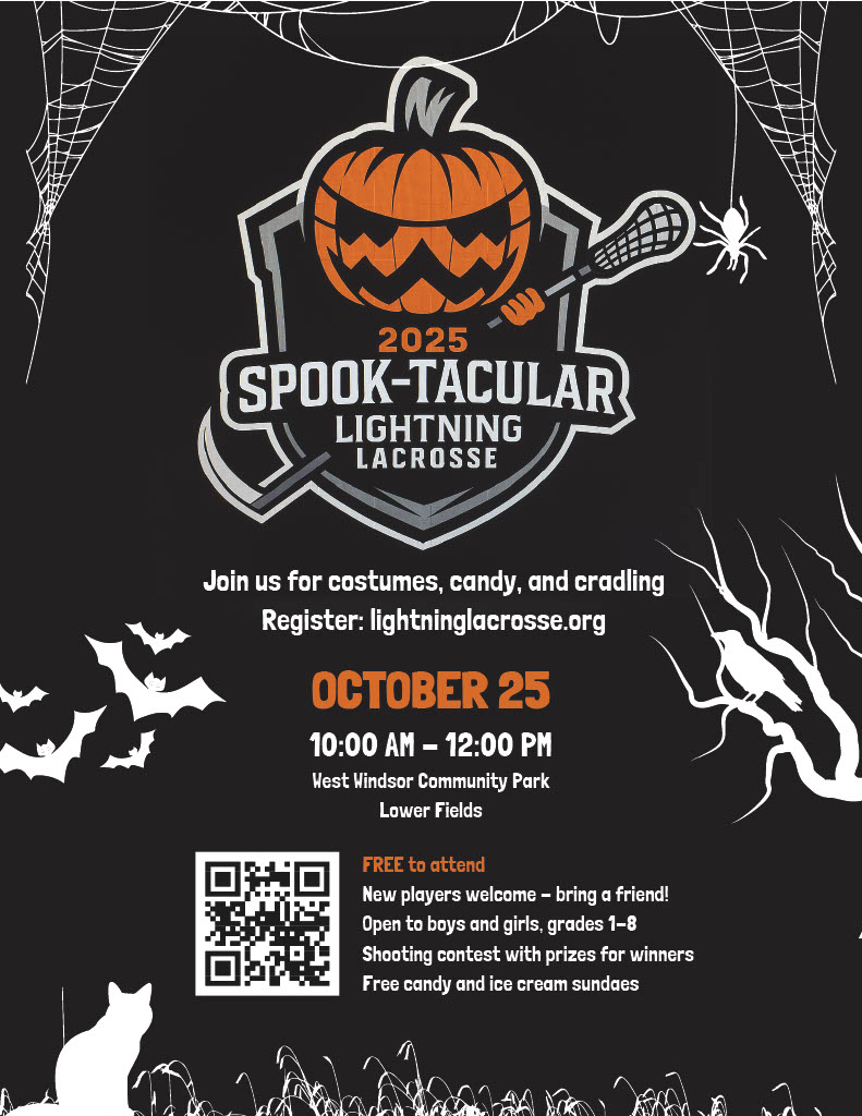 Lightning Lacrosse is planning some scary fun for new and existing lacrosse players, both boys and girls in 1st through 8th grades, on Saturday, October 25th! Join us for this completely free lacrosse clinic, known as the Spooktacular! No equipment is required and no current USA Lacrosse membership is necessary.