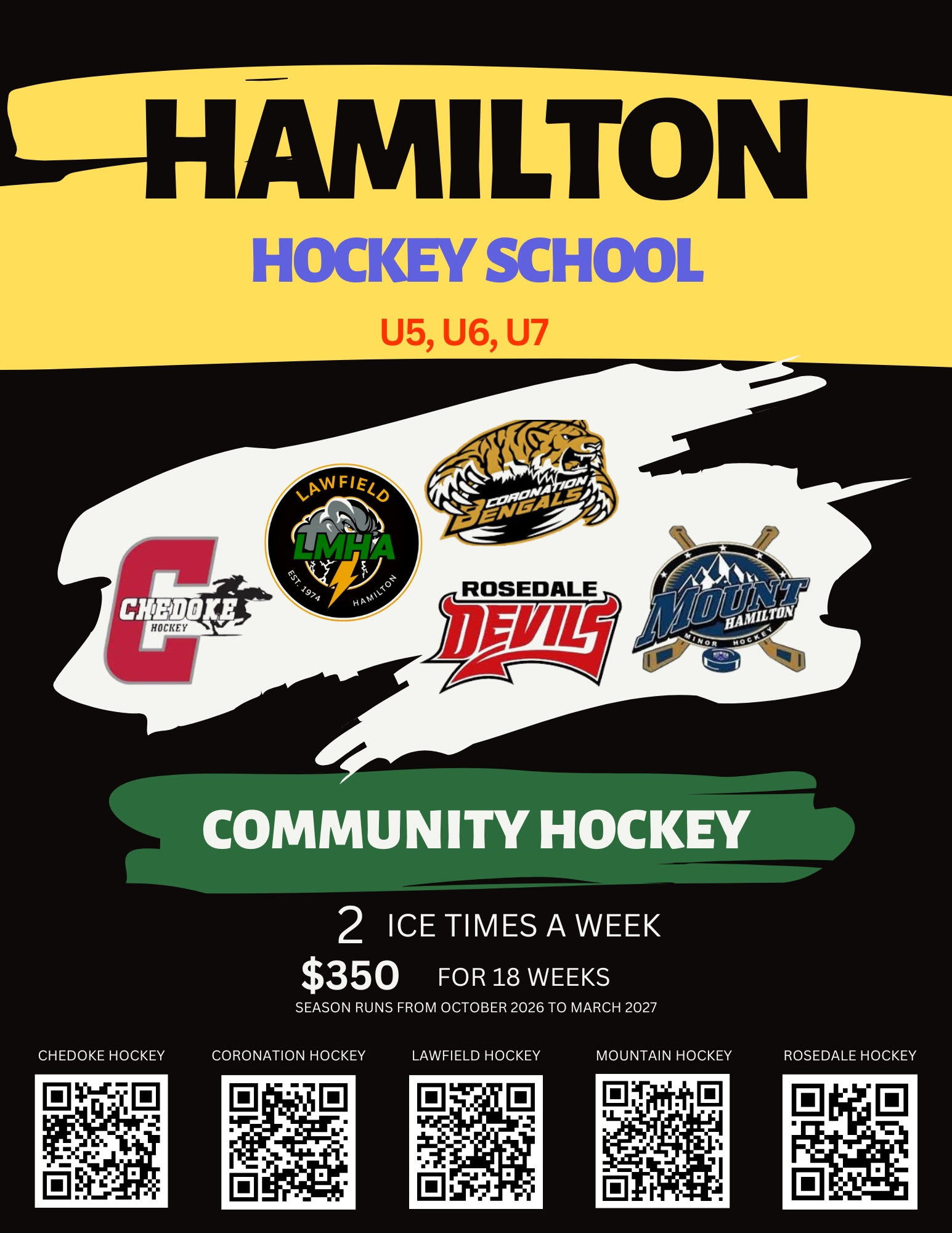 U8 (2019), U9 (2018), U11 (2016-2017)and U13 (2014-2015) Divisions normally have 1 practice and 1 game per week.