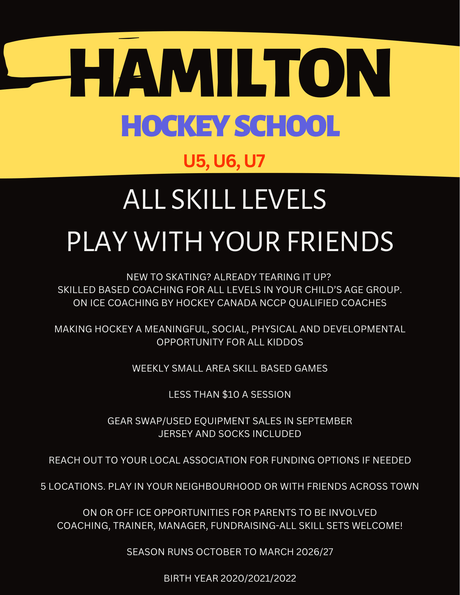 U8 (DOB 2019 & the 2020 subject to an evaluation). For those players in the 2019-2020 years wishing to register please contact the association for more information.