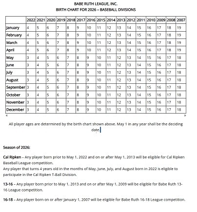 2026 Cal Ripken and Babe Ruth League