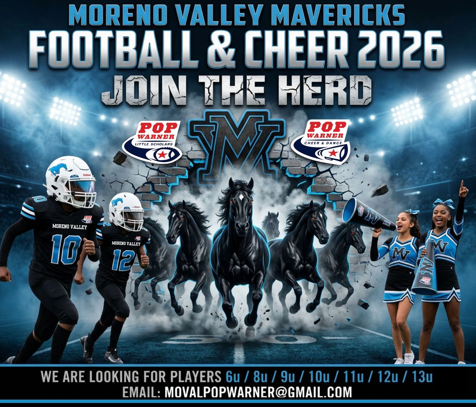 Welcome to the official site of Moreno Valley Pop Warner Youth Football, Cheer, & Dance. We serve the youth of Moreno Valley as part of the Mt. Baldy Pop Warner Football Conference. |