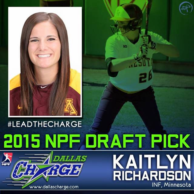 Former O'Connor standout Katie Richardson (2011) was drafted today by the Dallas Charge of the National Pro Fastpitch League. The Charge used the 5th overall selection in the entire draft to select Richardson, who is an anchor on the defending Big-10 Champion Minnesota Golden Gophers team. Richardson is a two time All-American and is currently a candidate for the USA Softball National Collegiate Player of the Year Award.