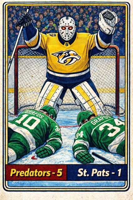 This one was effectively over before it began. The Predators’ explosive start, elite individual skill, and structured defensive play overwhelmed the St. Pats, further cementing their place atop the standings. With contributions up and down the lineup — and Stam anchoring things from the crease — the Predators continue to look every bit like the team to beat.