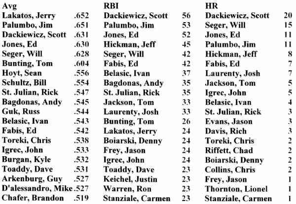 - Go to www.Leaguelineup.com/Painesville for 2006 stats