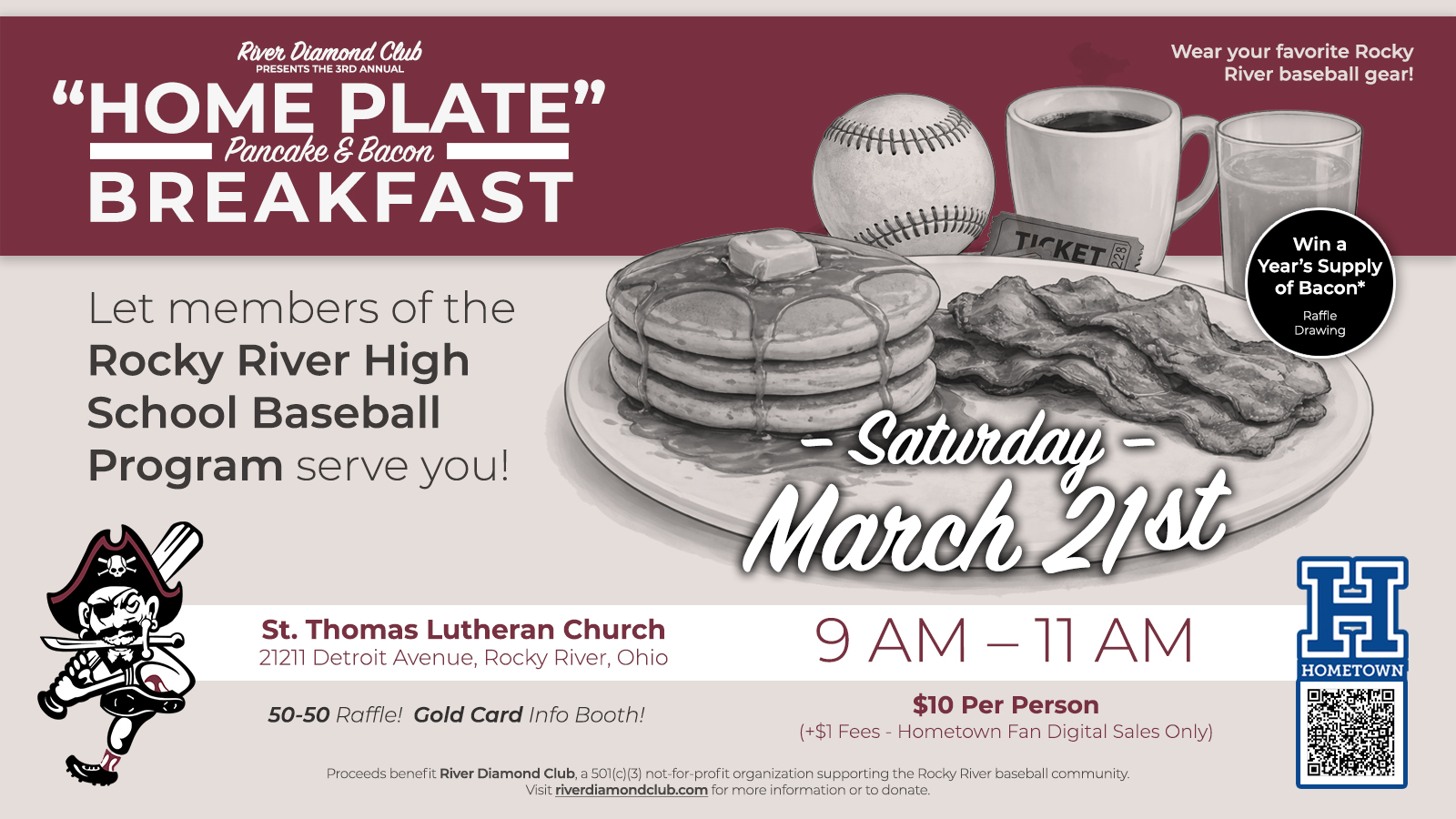 - 3rd Annual "Home Plate" Pancake & Bacon Breakfast - March 21st @ St. Thomas (9-11AM)