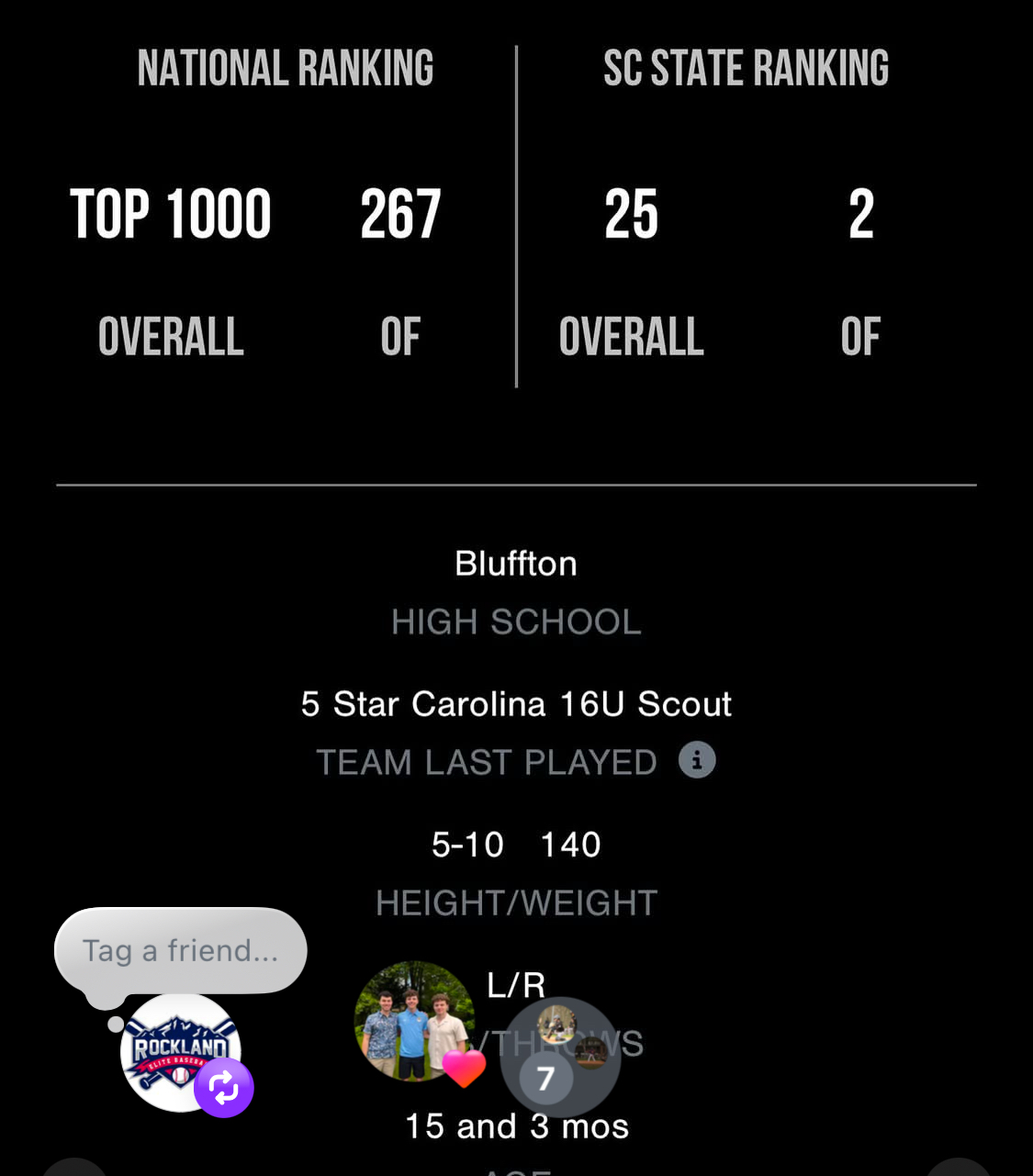 Henry Numssen is Ranked #2 in the State of South Carolina by Perfect Game!