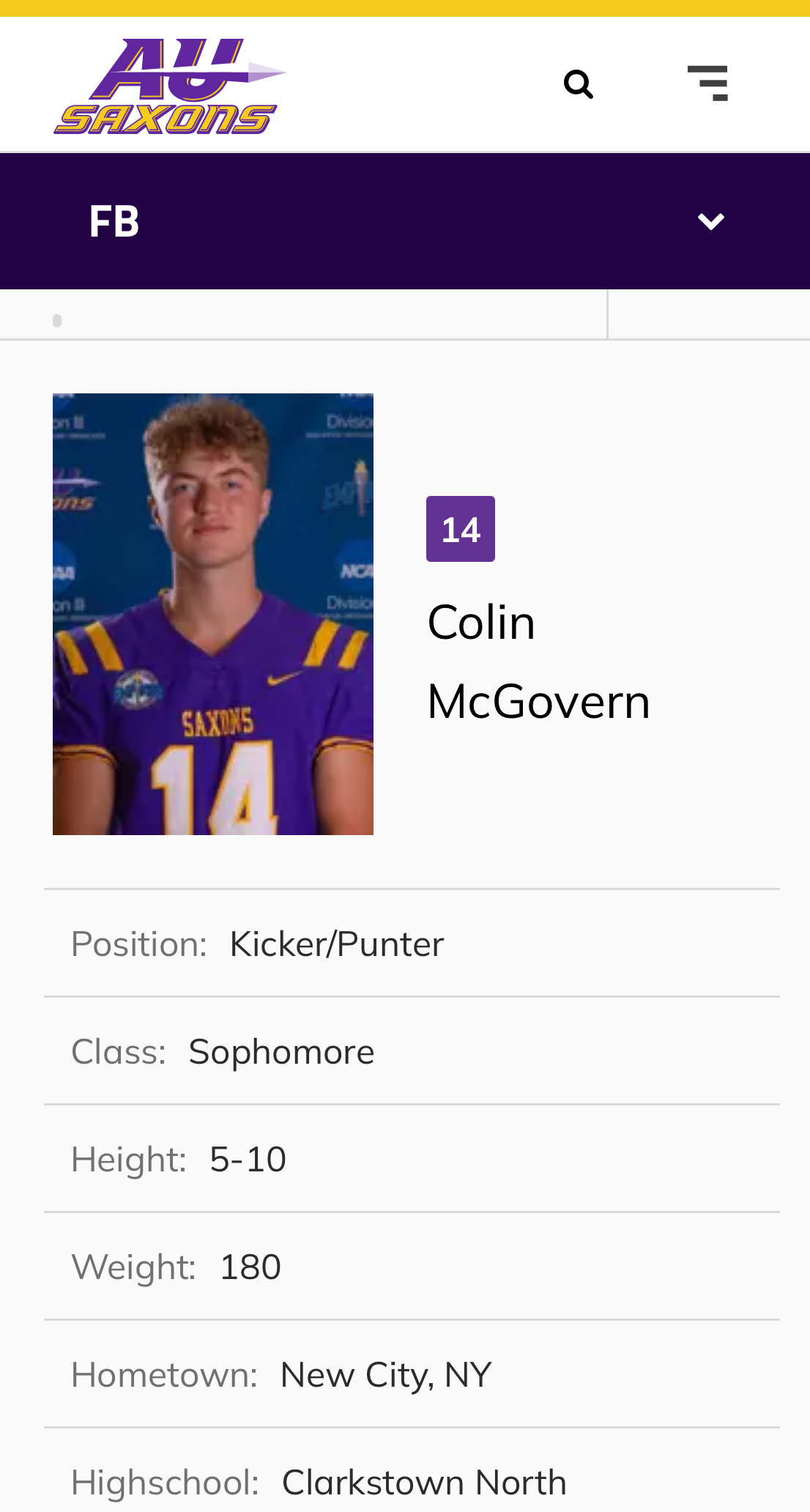 Colin’s great play earned him 2nd Team All-Conference. All done in only his second year at Alfred University. We can’t wait to see what he does next year on the gridiron.