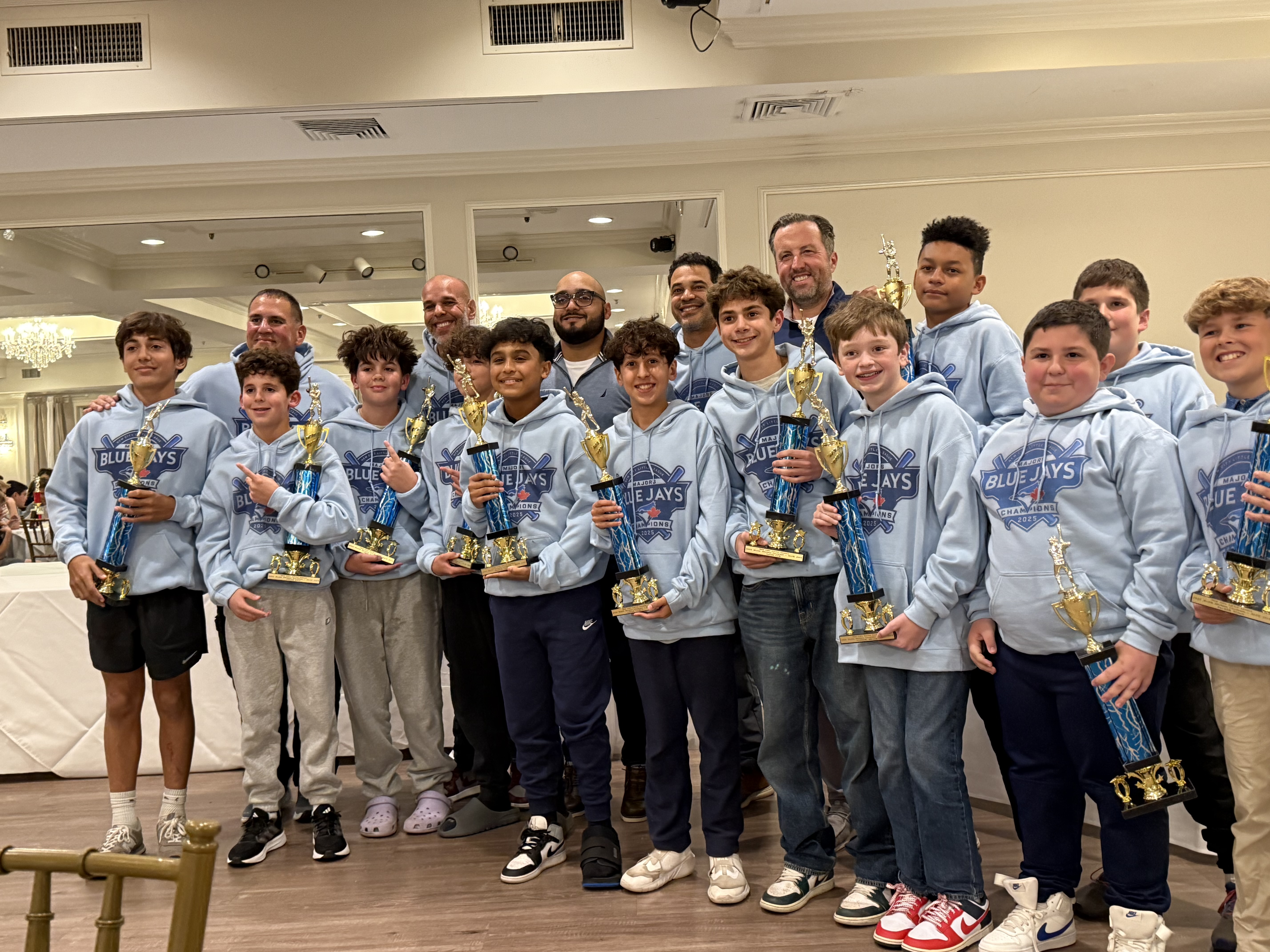 Congratulations to 12U Gold Player’s Chris M., Kal-El A., Logan C. and Deryk H. who celebrated their New City LL Bluejays Championship at tonight’s awards dinner. Also, helping the boys to the Championship was THE Coach Mike Montijo, Coach Jose Abreu, Coach Hector Camilo, Coach Ray Hernandez, and Coach Mike Sgroi.