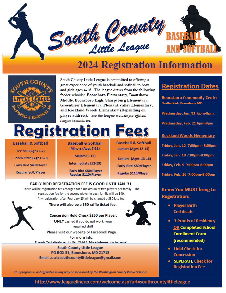 Tuesday 2/21 6-8pm at the Boonsboro Concession Stand