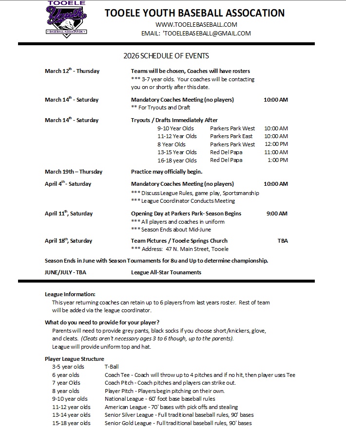 Coaches, remember to report all scores and pitch count here on the site right after your game. Failing to do so well make your pitcher ineligible to pitch until the next Sunday regardless of their pitch count.