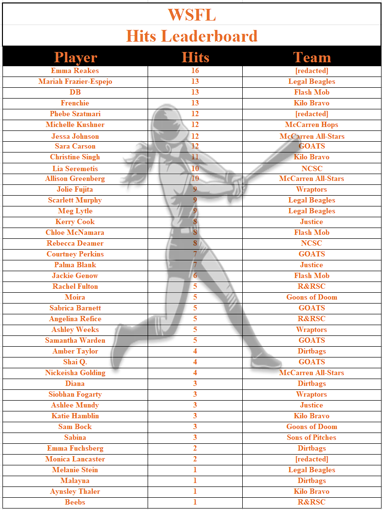The WSFL will have 16 Teams. Game times are 11am, 1pm and 3pm. And games on the asphalt at 1pm only. There are NO makeups for rain outs.
